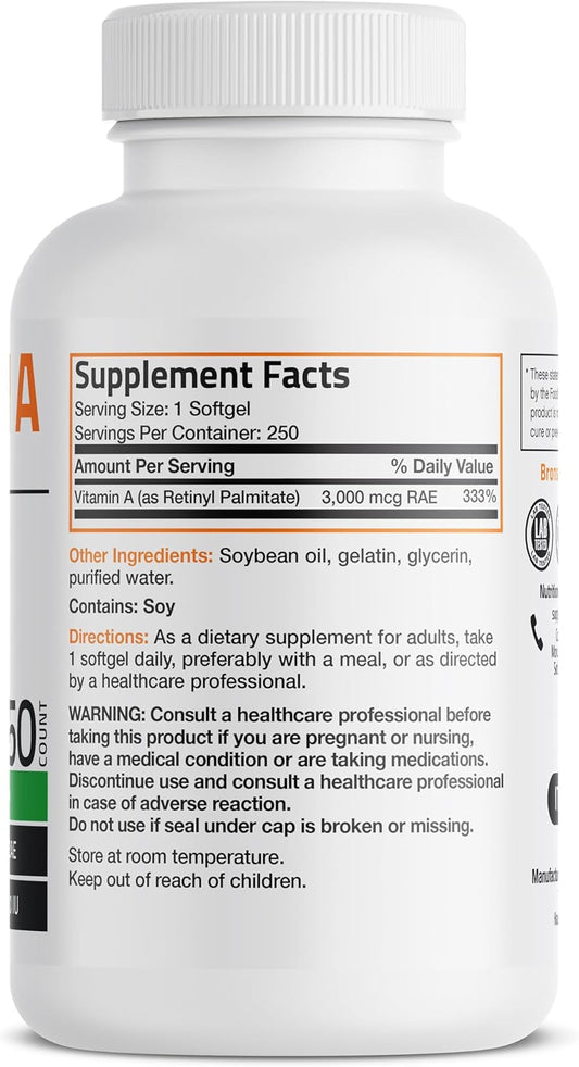 • Bronson Vitamin A 10,000 IU Premium Non-GMO Formula Supports Healthy Vision & Immune System and Healthy Growth & Reproduction, 250 Softgels