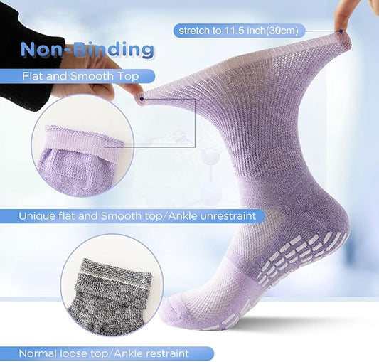 • Bulinlulu Diabetic Socks with Grippers for Women&Men-6 Pairs Bamboo Non Binding Diabetic Ankle Socks,Extra Wide Non Skid Stretchy Loose Top Socks with...