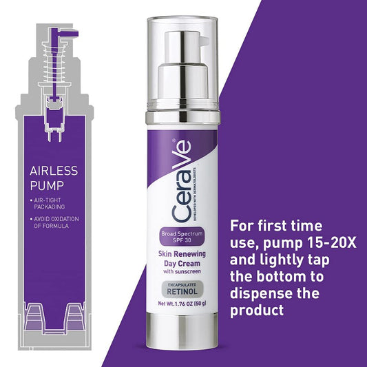 • Cerave Anti Aging Face Cream with SPF 30 Sunscreen | Anti Wrinkle Cream for Face with Retinol, SPF 30 Sunscreen, Hyaluronic Acid, and Ceramides | 1.76 Ounce