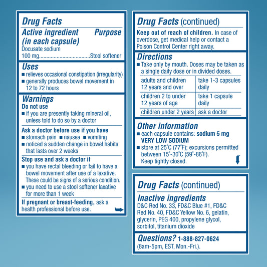 • COLACE Regular Strength Stool Softener 100 mg Capsules 60 Count Docusate Sodium Stool Softener for Gentle Dependable Relief