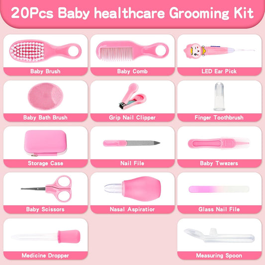 • Esonto Baby Healthcare and Grooming Kit,Baby Hair Clippers, Baby Nail Clippers with Light for Newborn Infant Toddler Kids Toes and Fingernails - Care, Polish and Trim (20 Kits Pink)