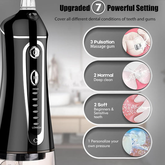• FZCOK Cordless Water Dental Flosser for Teeth Rechargeable - FZCOK 7 Clean Settings Oral Irrigator for Braces Adults Teeth Cleaning Portable with Long Battery Life, Waterproof