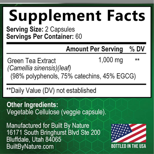 Green Tea Extract Pills - Powerful Antioxidant Supplement - 98% Standardized EGCG 1000mg for Natural Energy with Polyphenols - Gentle Caffeine - 120 Capsules