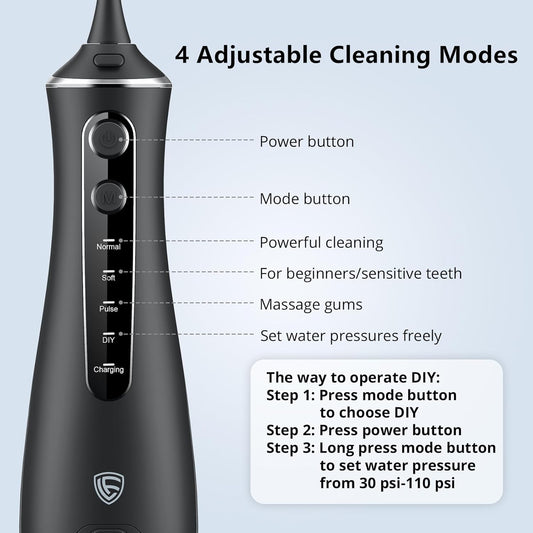 • LF Water Dental Flosser for Teeth with 6 Jet Tips, 4 Modes, Professional Cordless Cleaner Picks for Teeth Cleaning, IPX7 Waterproof, Portable, Rechargeable Power Floss Oral Irrigator for Home Travel