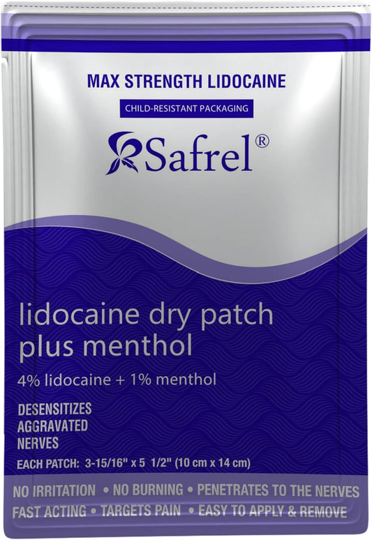 • Lidocaine 4% Plus Menthol Dry Patch 5 Count, Unscented Non Gel Large Size Pain Relief Patches for Muscle Aches, Cramps, Back, Arthritis, Ankles, Elbows, Neck, Shoulder and Joint Pain Knees