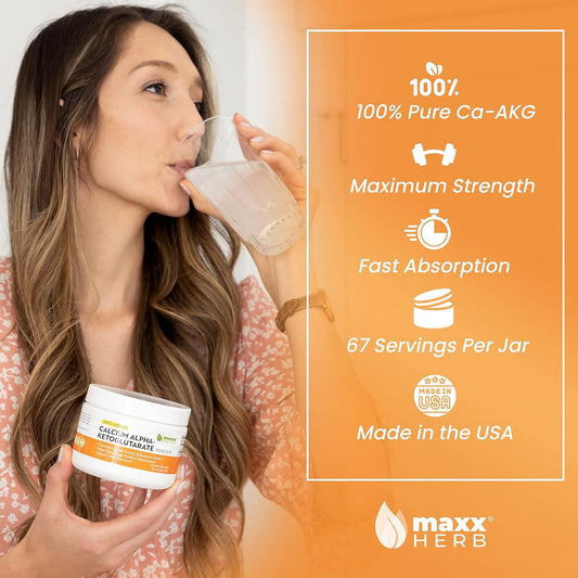 • Maxx Herb Calcium AKG, Pure Calcium Alpha - Ketoglutarate Powder (Ca-AKG), for Energy, Vitality, Mental Focus, Clarity & DNA Structure, Non-GMO & Gluten Free - 100 Gram Jar (67 Servings)