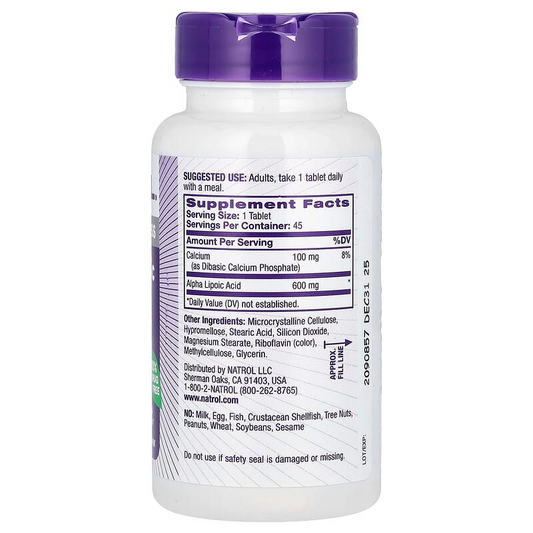 Natrol Alpha Lipoic Acid Time Release Tablets, Antioxidant Protection, ALA, Helps Protect Against Cellular Oxidation and Age-Related Damage, Whole Body Cell Rejuvenation, 600mg, 45 Count