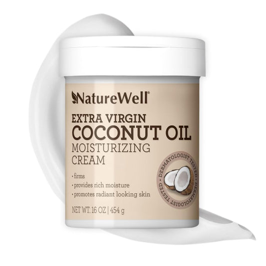• NATURE WELL Extra Virgin Coconut Oil Moisturizing Cream for Face, Body, & Hands, Anti Aging, Firming, Restores Skin's Moisture Barrier, Provides Intense Hydration For Dry & Dull Skin (16 Oz)