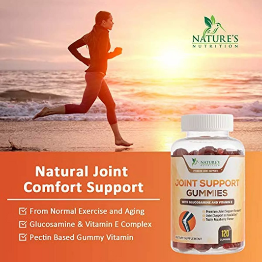 • Nature's Nutrition Joint Support Glucosamine Gummies Plus Vitamin E - Joint Support Supplement for Occasional Discomfort Relief for Back, Knees & Hands - Joint Health & Flexibility Supplement - 120 Gummies