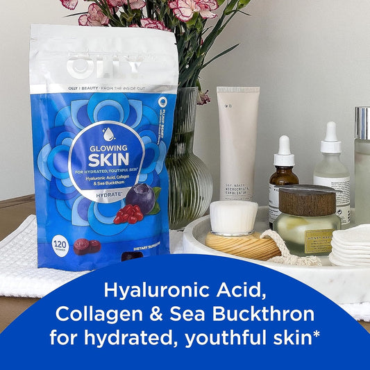 OLLY Glowing Skin Collagen Gummy, Youthful Skin, Hyaluronic Acid, Sea Buckthorn- 120 Ct