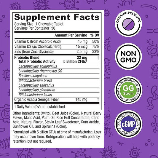 • Physician's CHOICE Probiotics for Kids - 7 Diverse Strains, Organic Prebiotics, Vitamins & Minerals - Clinically Studied L. Rhamnosus GG - Immune & Digestive Support - No Allergens or Artificial Dyes