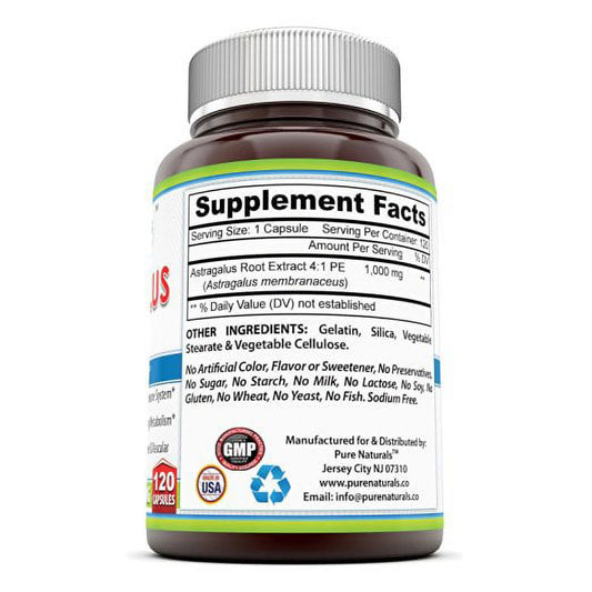 • Pure Naturals Astragalus 1000 Mg 120 Capsules