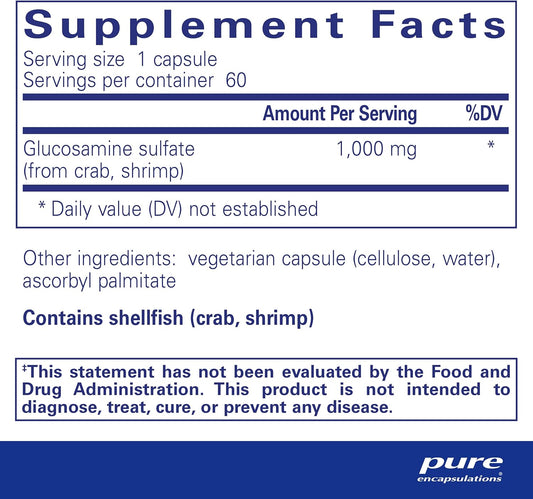 • Pure Encapsulations Glucosamine Sulfate 1,000 mg | Supplement for Joint Support and Mobility, Cartilage Health, and Connective Tissue* | 60 Capsules
