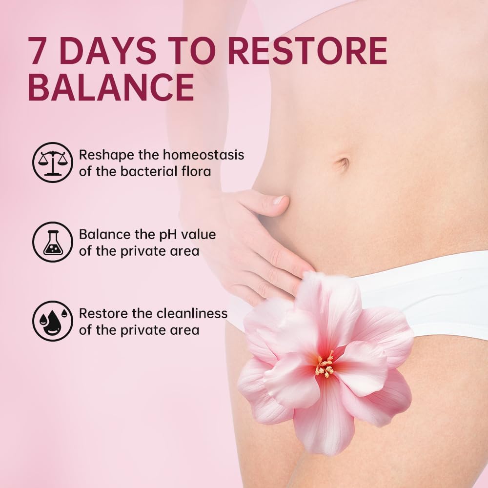 - Restores pH Balance:A blend of prebiotics and probiotics works together to restore the natural balance of beneficial bacteria, ensuring vaginal pH remains in the optimal acidic range.