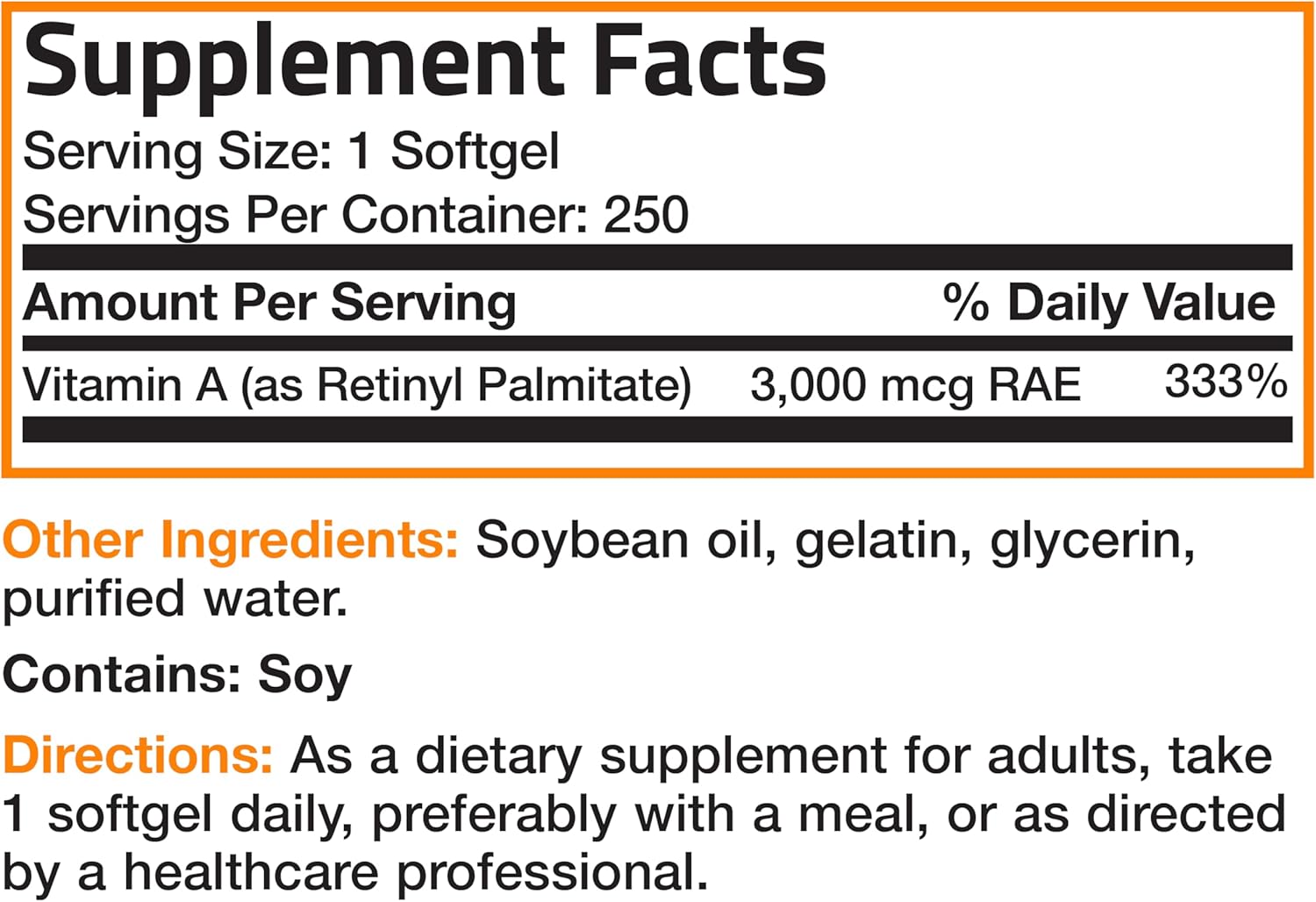 Bronson Vitamin A 10,000 IU Premium Non-GMO Formula Supports Healthy Vision & Immune System and Healthy Growth & Reproduction, 250 Softgels