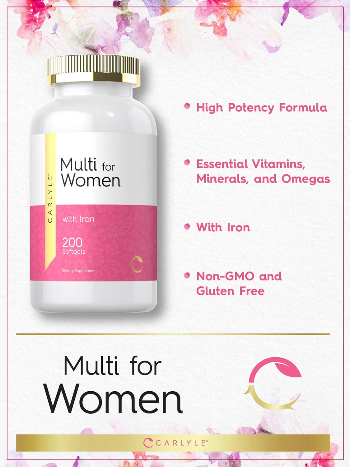 Carlyle Multivitamin for Women with Iron | 200 Softgel Capsules | Nutritional Support Supplement | Non-GMO, Gluten Free