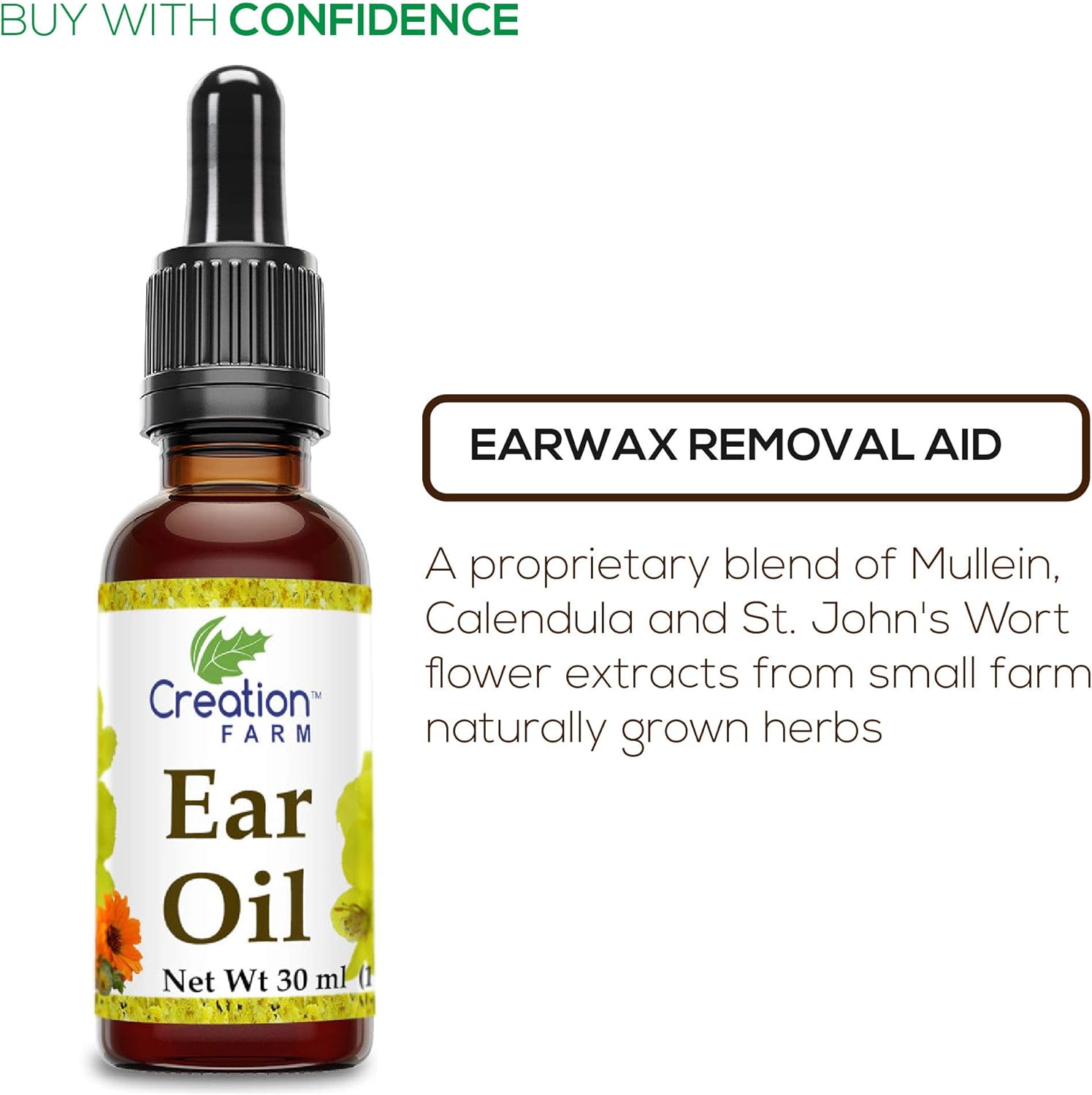 Creation Farm Ear Oil Drops with Mullein, Calendula, St Johns Wort, All Natural Herbal Relief for Earwax Removal, Earache Soothing, Itchy Irritated, Clogged or Dry Ears Made in USA
