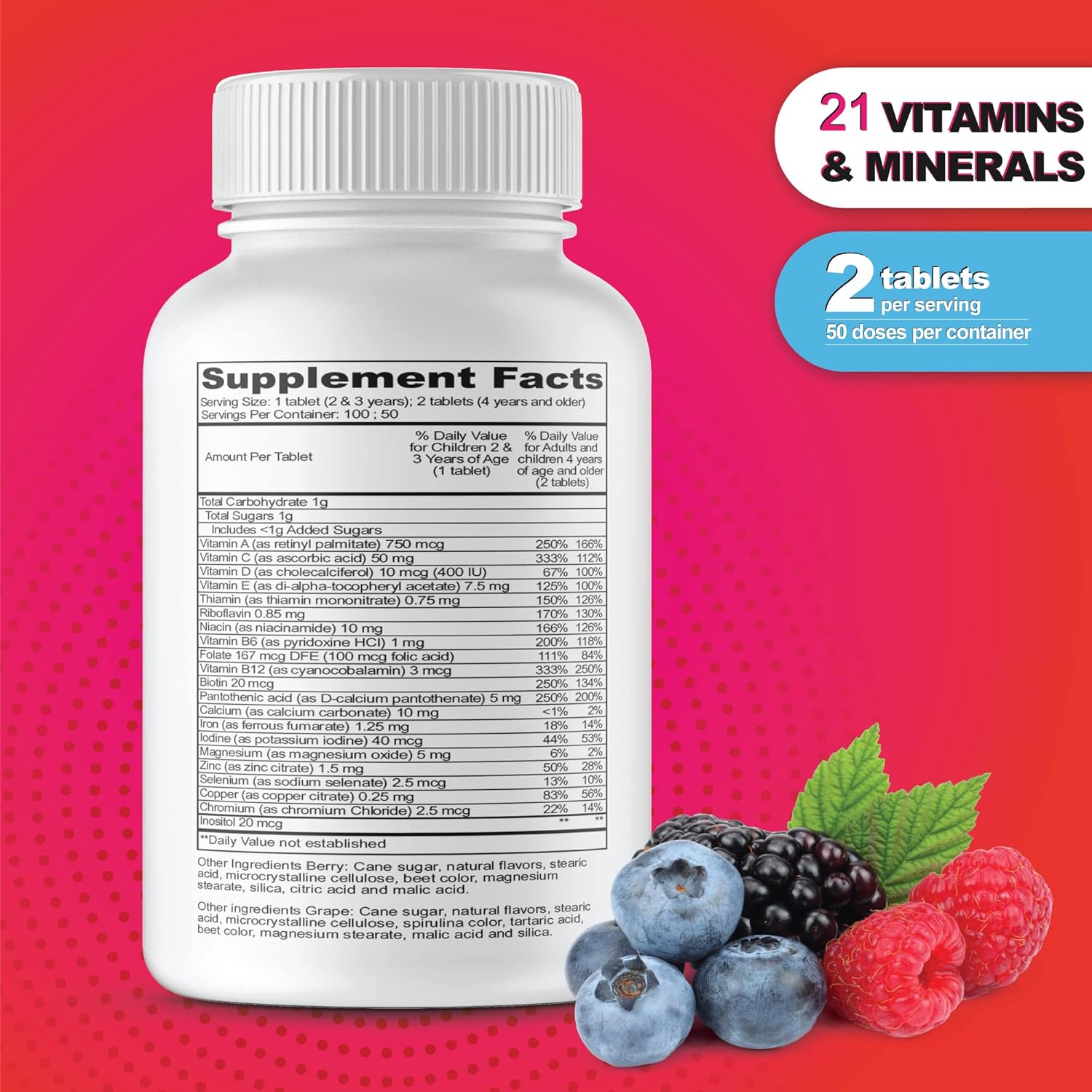 - GREAT TASTING GRAPE & BERRY FLAVORS: Delicious Grape & Berry Pectin [Non Gelatin] Chews Provide Powerful Nutrition & Protection in Yummy Chewable Form; Your Child Will Never Again Forget to Take The Daily Supplement!