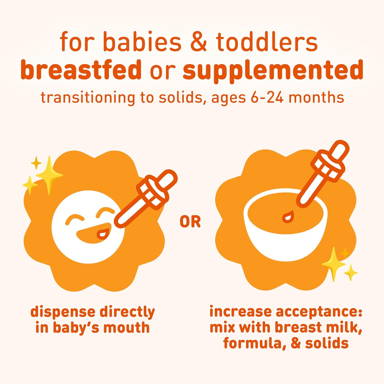 - FORMAT and USAGE: Easy to use dropper dispenses directly into the mouth or can be mixed with other foods (breast milk, formula, juice, cereal etc.) to increase acceptance; 50 uses for 50 ml