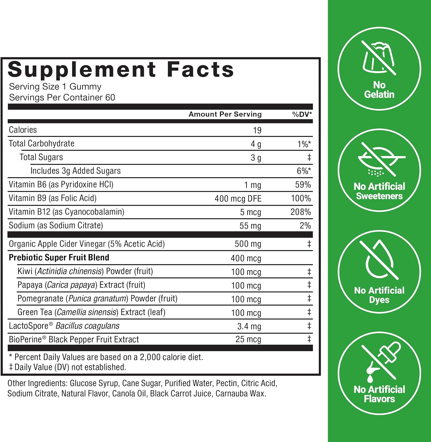 Special Ingredients | Organic Apple Cider Vinegar, Bacillus coagulans, Green Tea Extract |