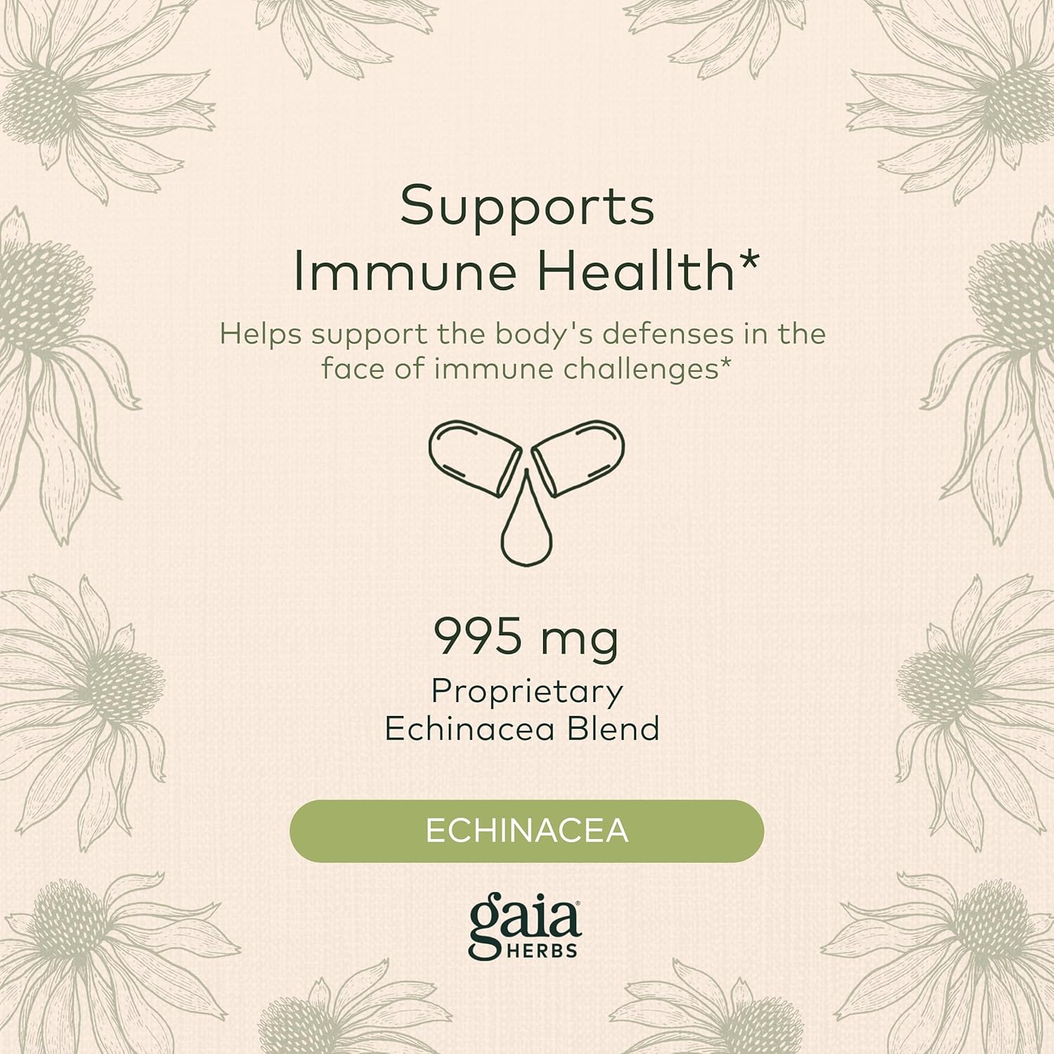 Gaia Herbs Echinacea Supreme - Immune Support Supplement - 60 Vegan Liquid Phyto-Capsules (30-Day Supply)