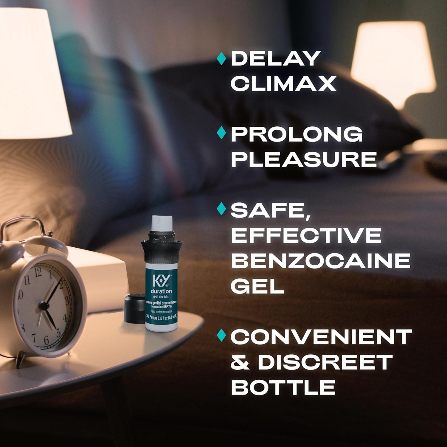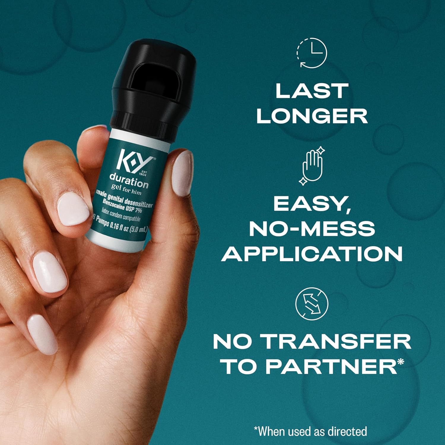 K-Y Duration Gel 0.16 fl oz, for Men, Adult Couples, Numbing Male Genital Desensitizer to Last Longer, Pleasure Enhancer, 36 Pumps, Latex Condom Compatible