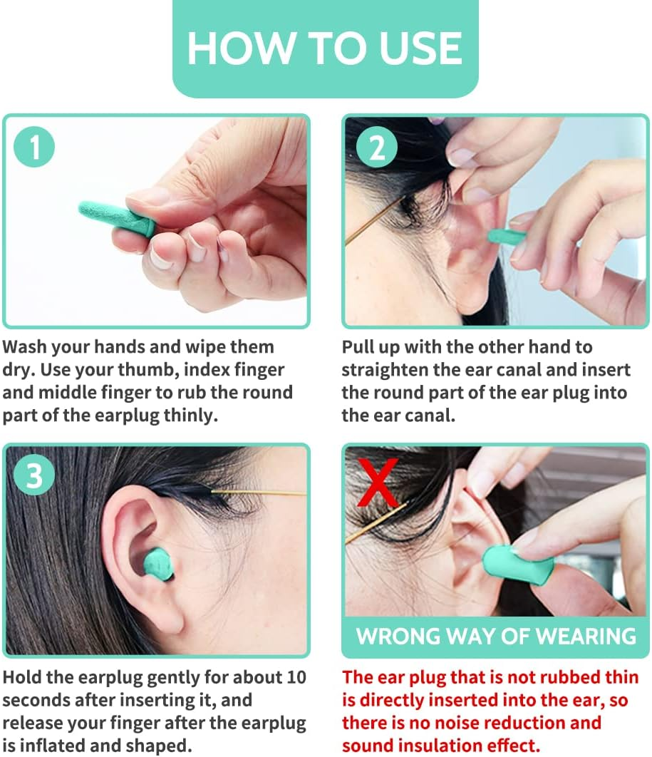 - ⭐ [SOFT & COMFORTABLE]: Made of Super Soft and Non-toxic Foam, comfy and skin-friendly. Slow rebounded in 45s-60s and low-pressure, which helps the earplug to be inserted into the ear for a better fit in the ear canal