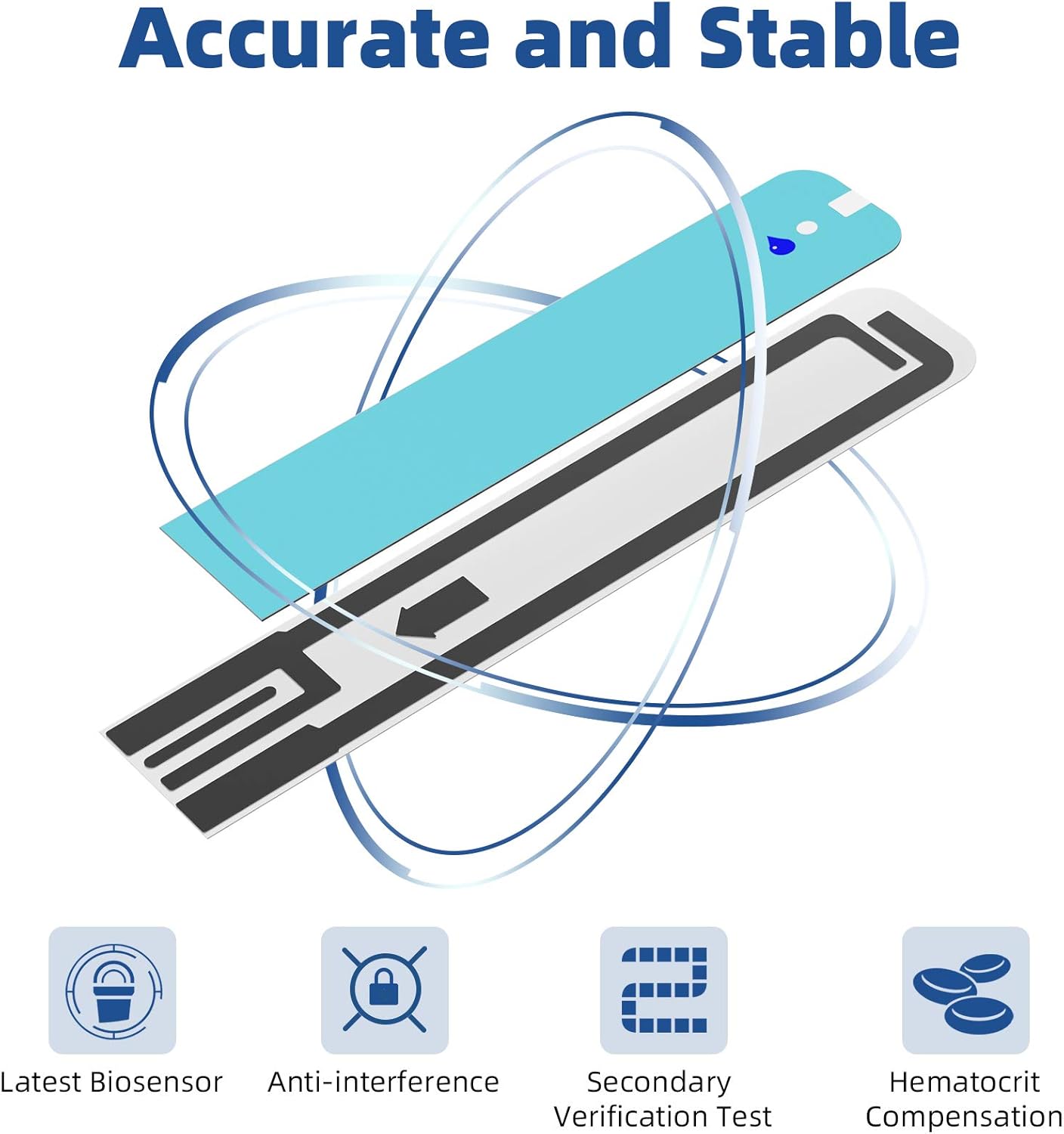 - Accurate and Reliable: These strips adopt industry-leading biosensor technology and other excellent technologies, and are free from the interference in the presence of galactose, maltose, or fructose in blood glucose tests; Conducive to get more accurate measurements