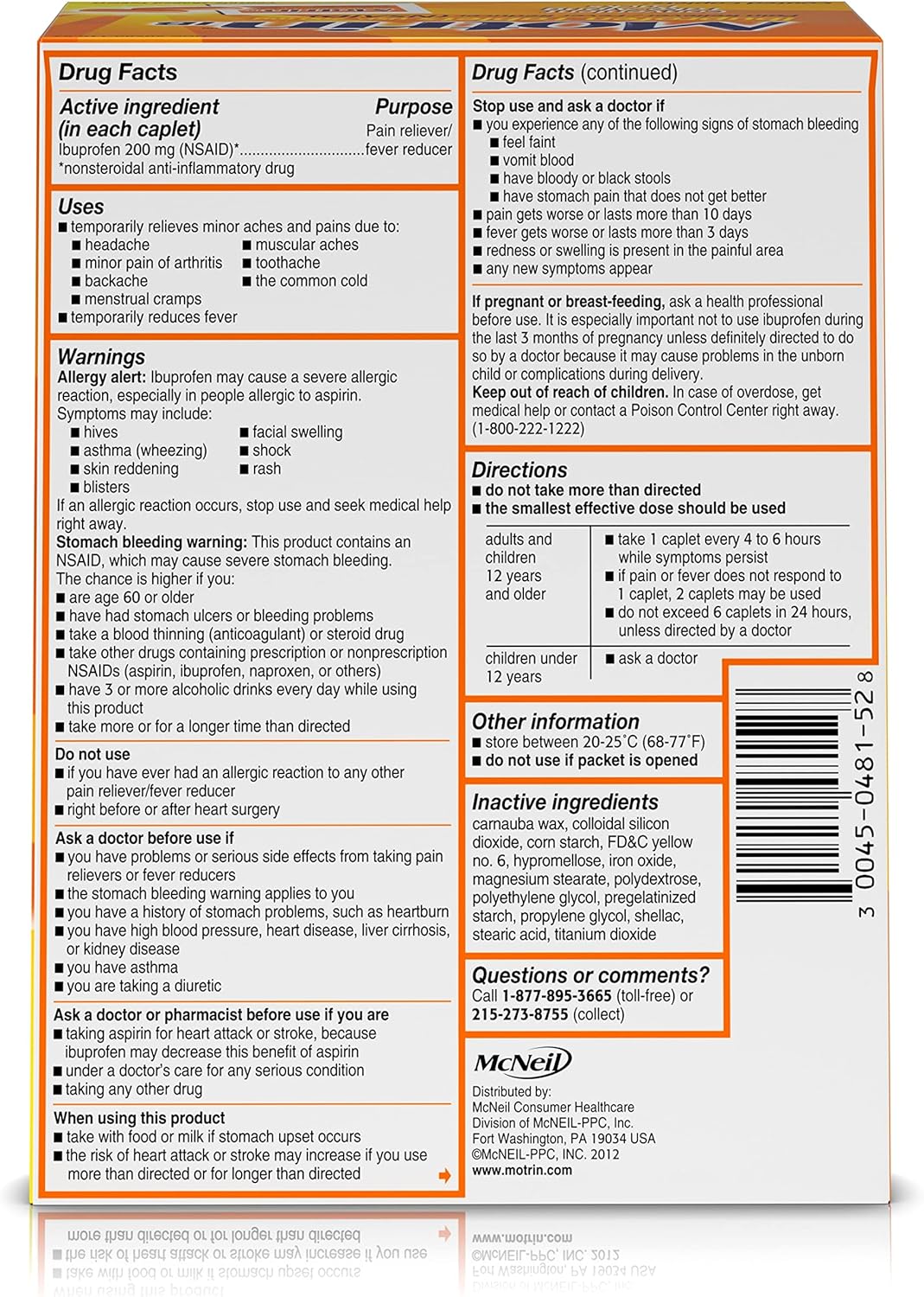 Motrin IB, Ibuprofen 200mg Tablets, Pain Reliever/Fever Reducer for Muscular Aches, Headache, Backache and Minor Arthritis Pain, Convenient for Travel & On-The-Go, 50 Packets of 2, 100 ct