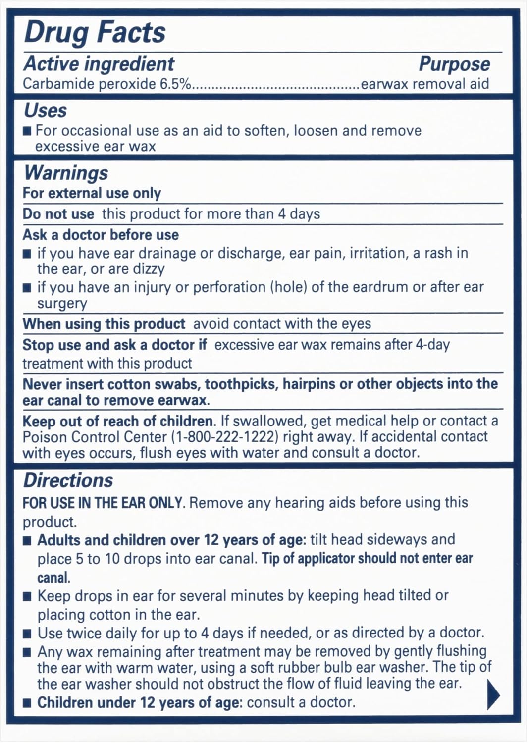 Carbamide Peroxide Ear Wax Removal Aid is a safe, fast-acting formula, and a complete, medically approved system. Contains 0.5 ounces and a syringe.