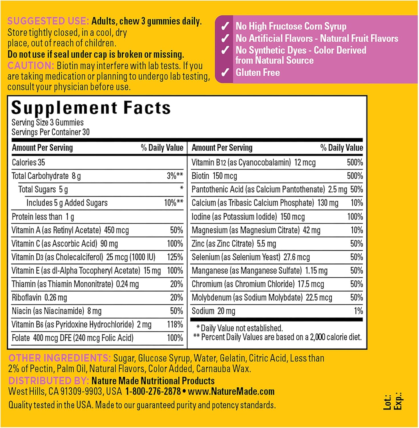 - Nutritional support supplement: contains one 90 count bottle of Nature Made Advanced Multivitamin Gummies for Her for a 30-day supply