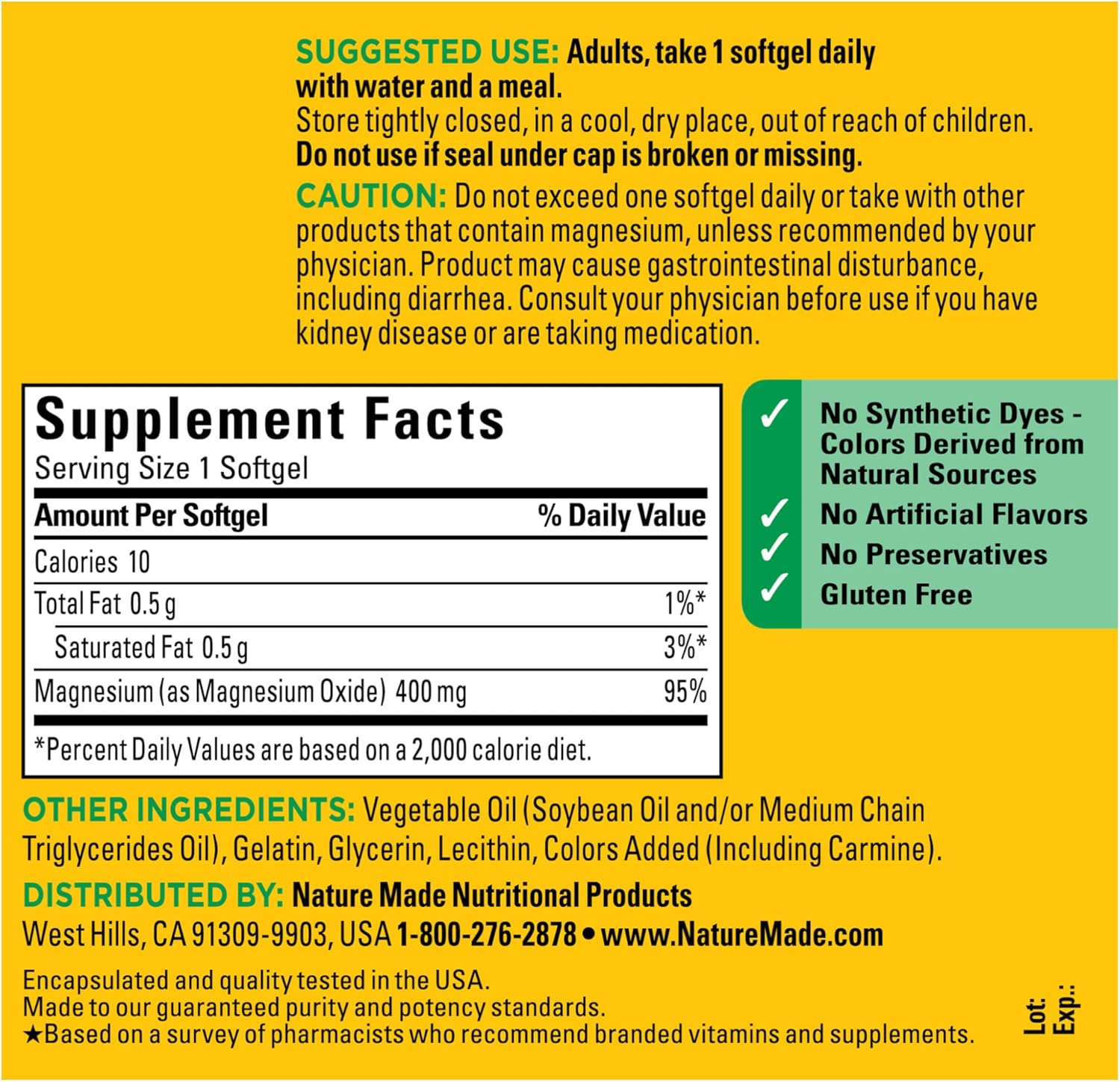 Nature Made Magnesium Oxide 400mg, 150 Softgels