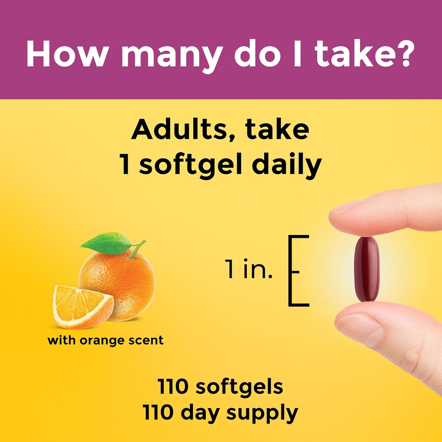 - Now with orange scent: Adults take one prenatal vitamin softgel daily with water and a meal for optimal absorption