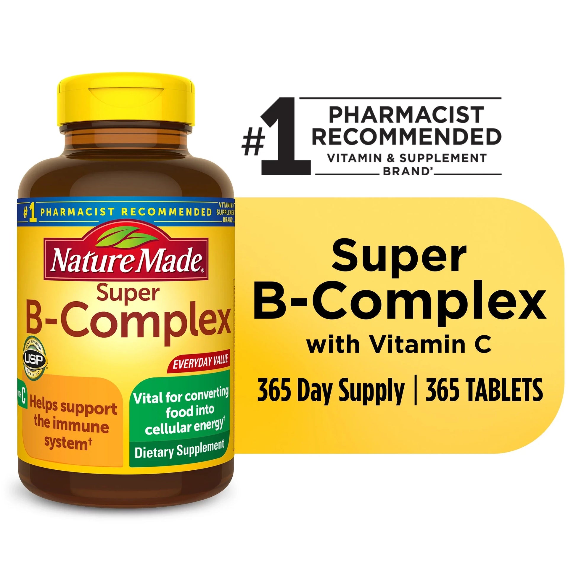 - Immune support supplement: contains one 365 count bottle of Nature Made Super B Complex with Vitamin C and Folic Acid Tablets