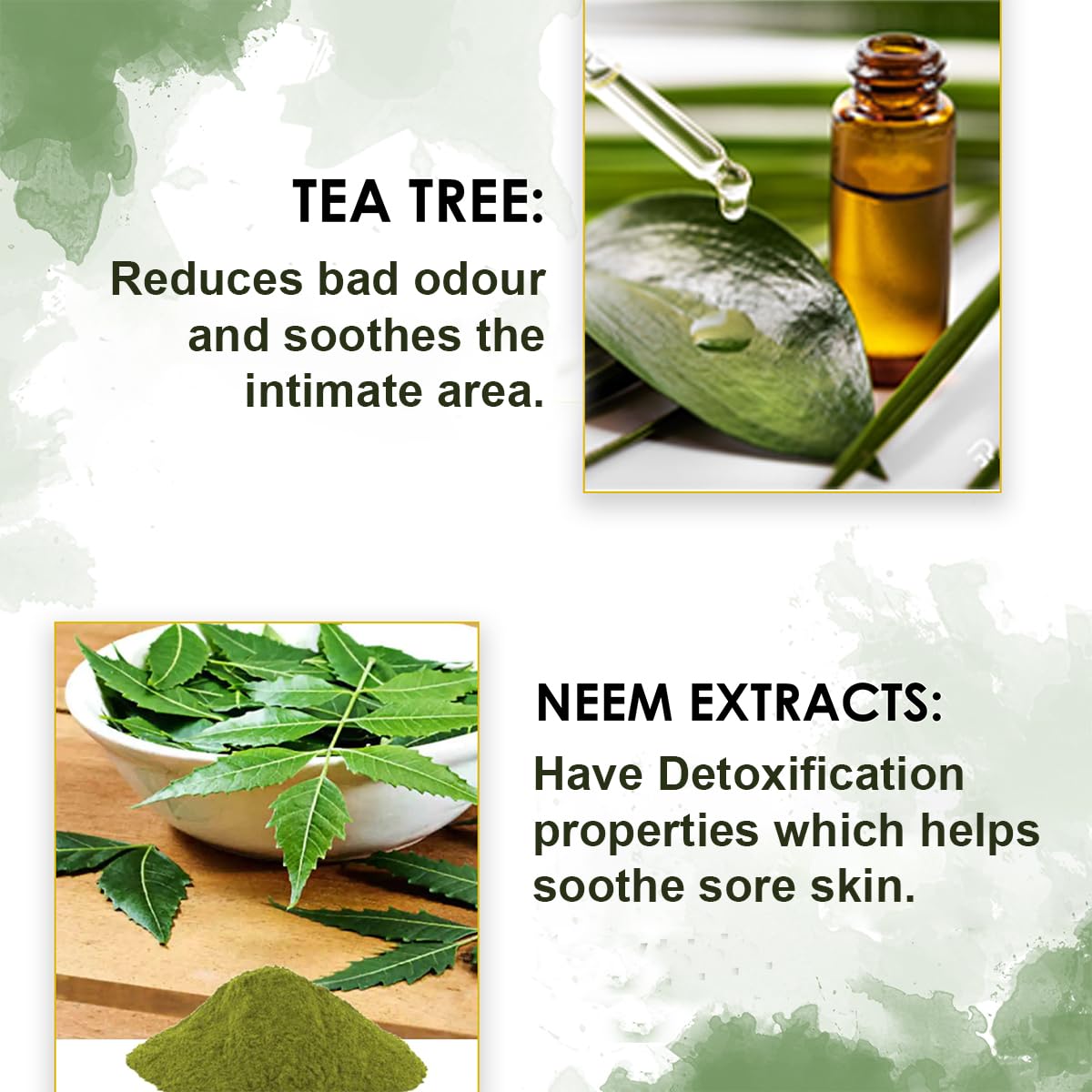 - Tea Tree Oil: Reduces itching and rashes in the intimate area.