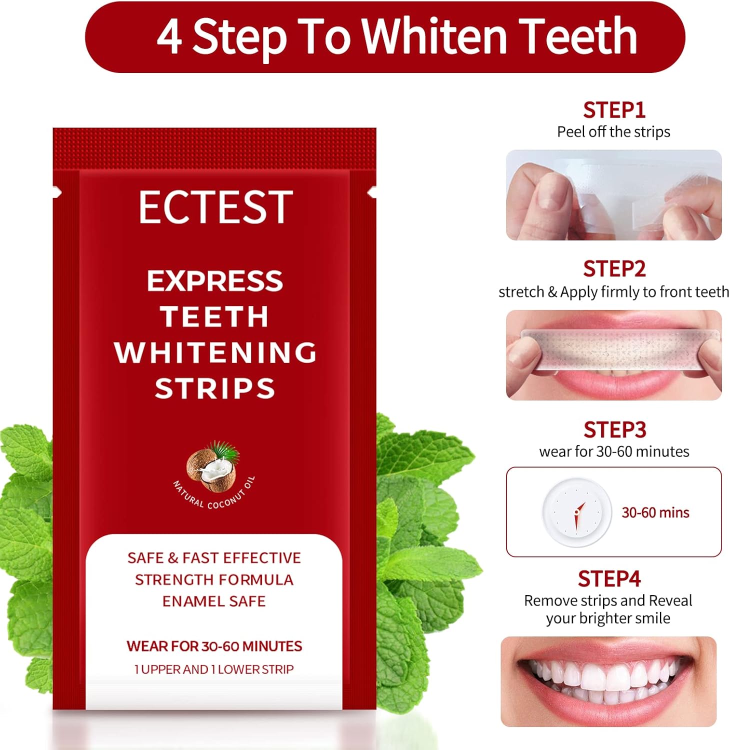 Ectest Teeth Whitening Strips for Teeth Sensitive, Professional Teeth Whitening Kit for Coffee Drinker, 28 Teeth Whitener Strips Coconut Flavor, 14 Treatments Easy to Use