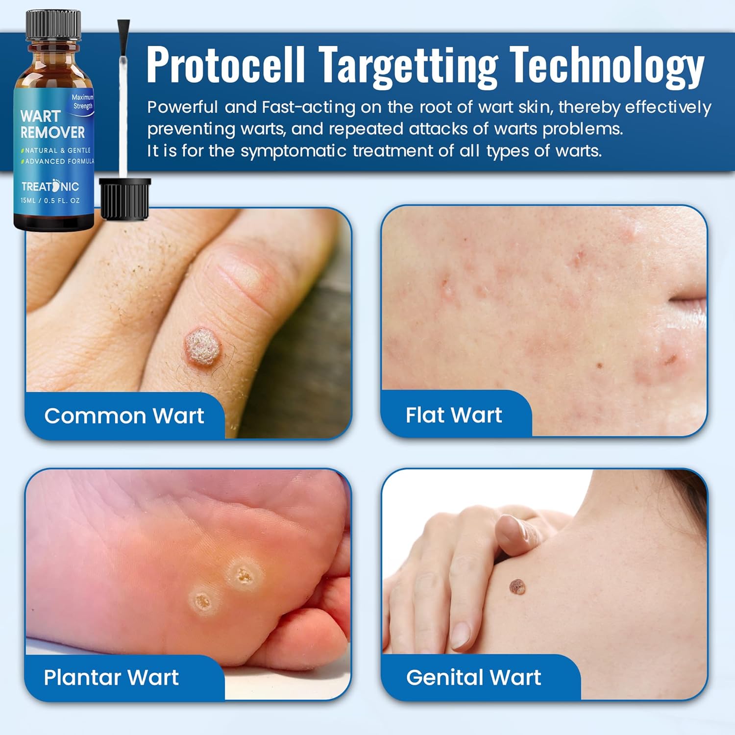 - ✅QUICK and PROVEN RESULTS: Treatonic Wart Remover is a slightly viscous gel that clings to the wart while absorbing into the surrounding tissue to start working right away. Our professional-quality wart remover fully eliminates most warts within 2 weeks of regular application.