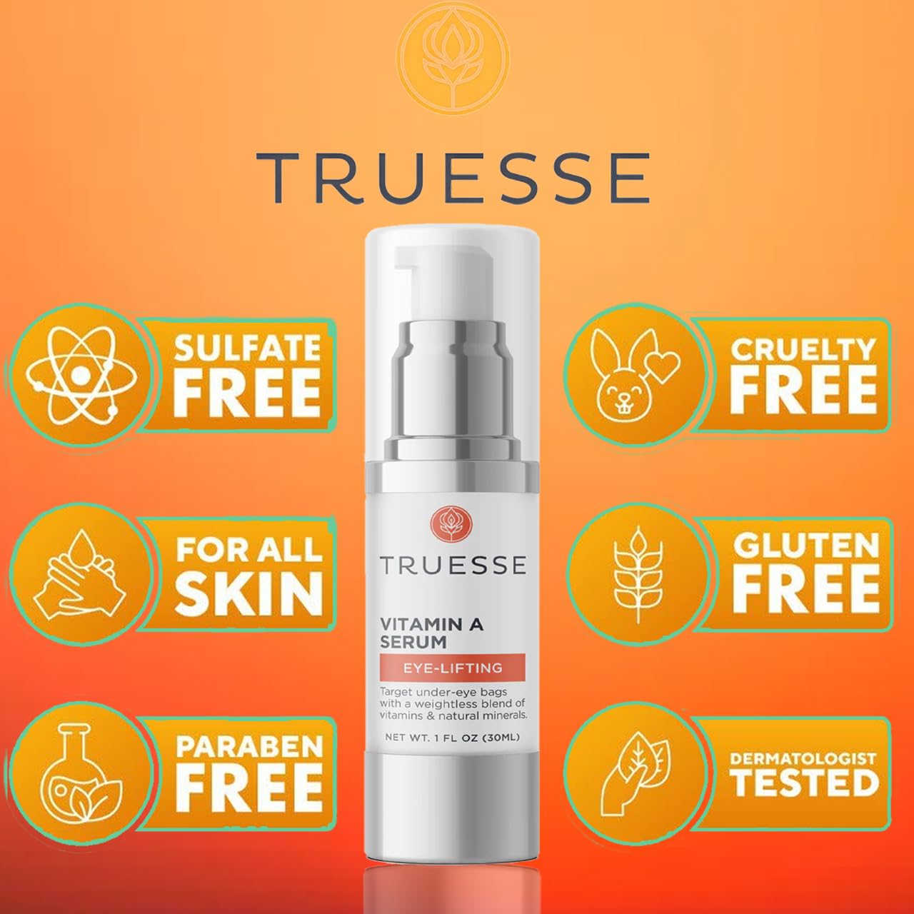TRUESSE Ayurvedic Vitamin A Serum – Natural Retinol for Firm Bright Skin - Reduces Under Eye Bags – Hyaluronic Acid for Hydration