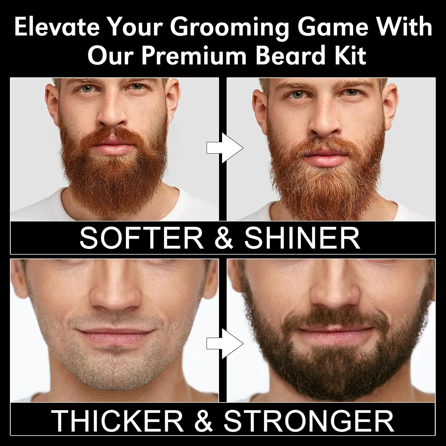 Upgraded Beard Grooming Kit w/Beard Conditioner, Beard Oil, Beard Balm, Beard Brush, Beard Shampoo/Wash, Beard Comb, Beard Scissors, Storage Bag, Beard E-Book, Beard Growth Care Gifts for Men
