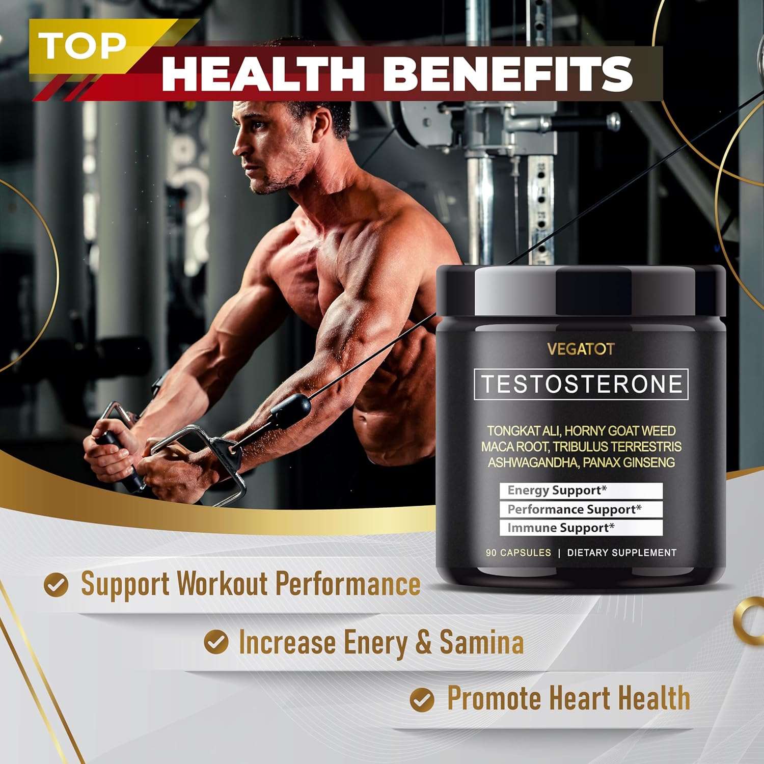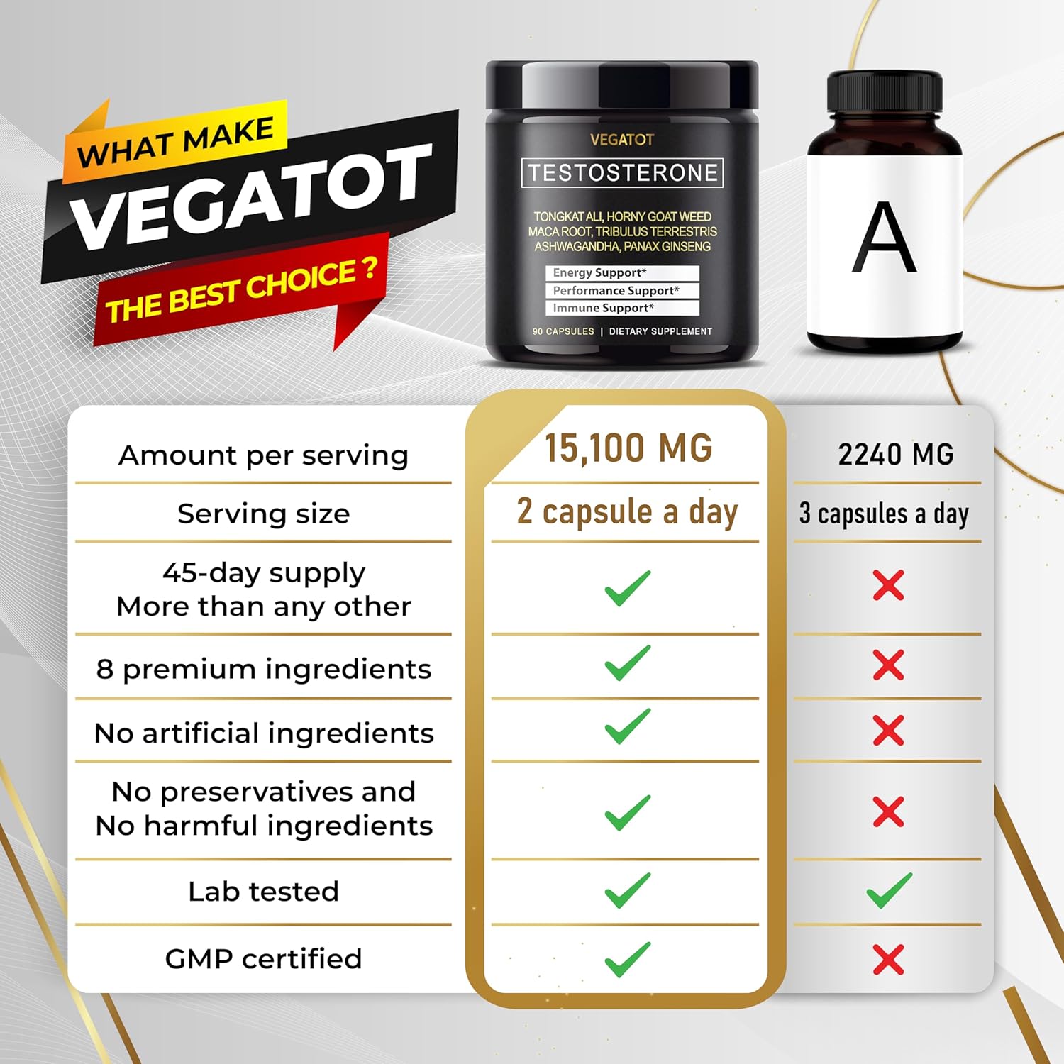 VEGATOT in 1 Ultimate Testosterone Booster 15100MG - Boost Performance with Tongkat Ali Panax Ginseng Maca Root Ashwagandha Tribulus - Energy Stamina Circulation Immune Support
