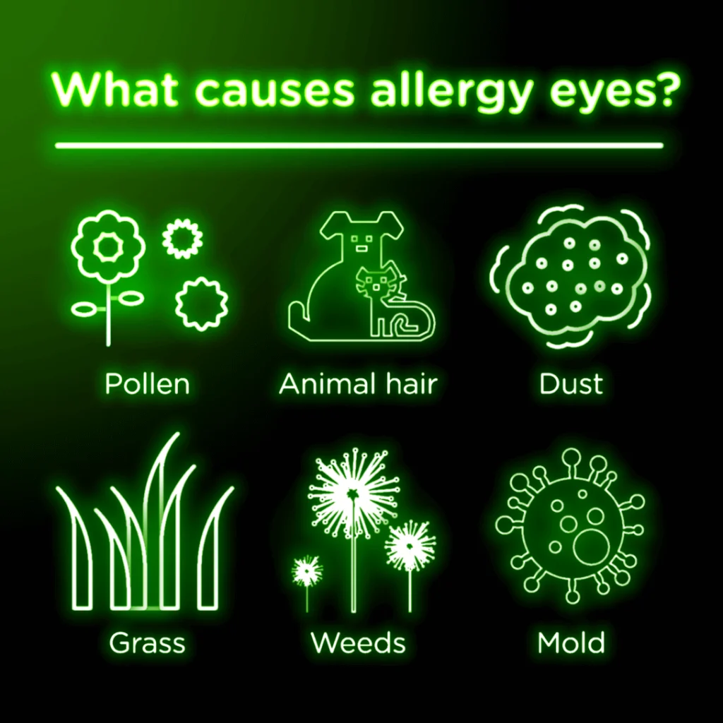 - These clinically-proven allergy eye drops contain 0.3% pheniramine maleate, an effective antihistamine to help relieve irritated red, itchy, eyes due to common allergens such as pollen, ragweed, grass, and animal hair and dander