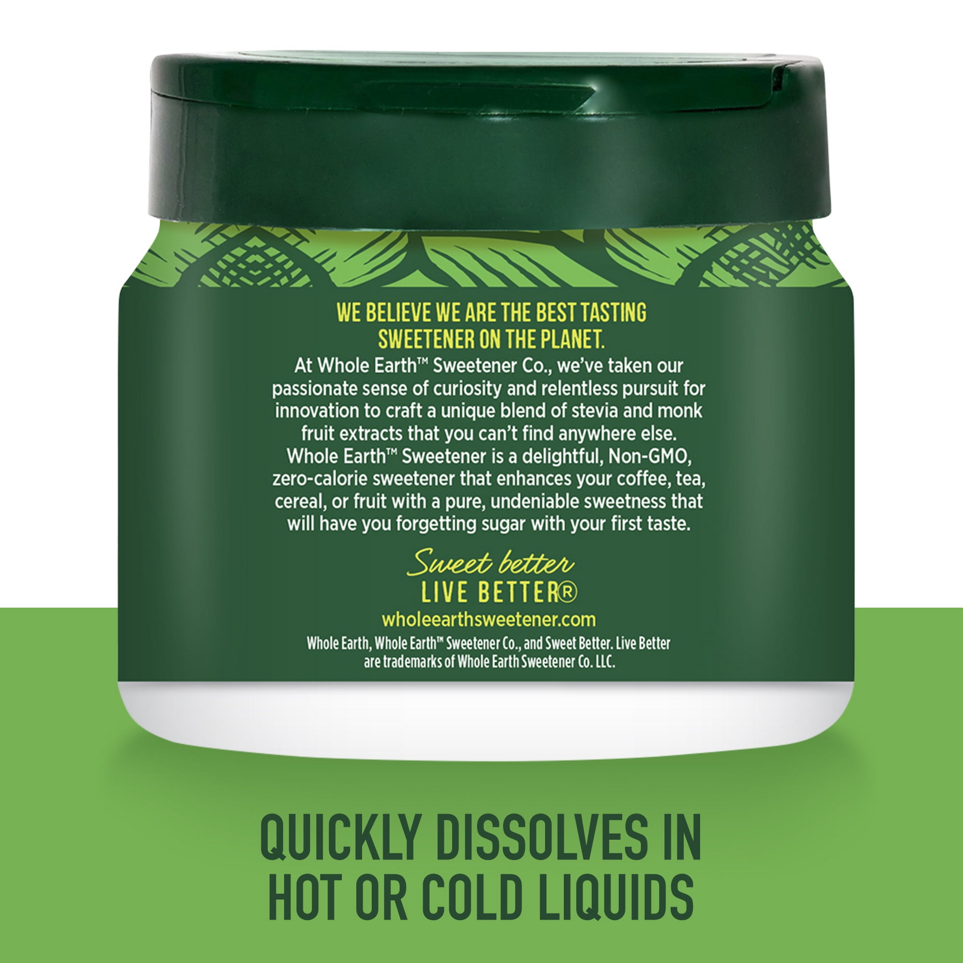 - Whole Earth Plant Based Sweeteners: Our low and zero calorie plant-based sugar substitutes are great for coffees, teas, cocktails, baked goods, and snacks. Available in packets, liquids, bulk pouches and jars