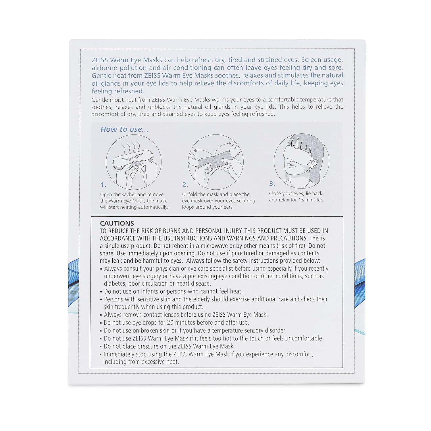 - EFFECTIVE AND GENTLE: ZEISS Unscented Warm Eye Masks self heat to a gentle yet effective temperature for at least 15 minutes to help refresh dry, tired, and strained eyes.